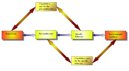 The term hypostasis can cover a wide range of personality-related entities usually known as type, stage, trait, system, approach.[1] The history of the concept can be traced back to Peirce's hypostatic abstraction, or personification of traits. Different authors have described various dimensions of the self (or selves), personality dimensions and subpersonalities.[2] Contemporary studies link different aspects of personality to specific biological, social, and environmental factors.