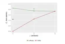 Group sequential design is the application of sequential analysis to clinical trials. At each interim analysis, investigators will use the current data to decide whether the trial should either stop or should continue to recruit more participants. The trial might stop either because the evidence that the treatment is working is strong ("stopping for benefit") or weak ("stopping for futility"). Whether a trial may stop for futility only, benefit only, or either, is stated in advance. A design has "binding stopping rules" when the trial must stop when a particular threshold of (either strong or weak) evidence is crossed at a particular interim analysis. Otherwise it has "non-binding stopping rules", in which case other information can be taken into account, for example safety data. The number of interim analyses is specified in advance, and can be anything from a single interim analysis (a "two-stage" design") to an interim analysis after every participant ("continuous monitoring").