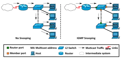 IGMP general queries from the querier must be unconditionally forwarded by all switches involved in IGMP snooping.[1]
