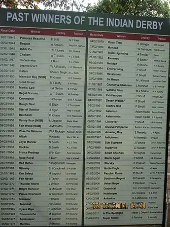 4. "Indian Derby Winners". www.tbheritage.com. Retrieved 24 May 2018.