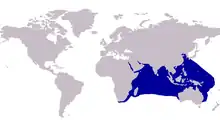 The Indian threadfish inhabits the tropical regions of the Indian and Western Pacific Oceans, ranging from Madagascar, east Africa and the Red Sea to India, China, South East Asia, north to Japan and south to Indonesia and northern Australia.[6] The easternmost report is that of a specimen taken off French Polynesia in the Pacific.[2]