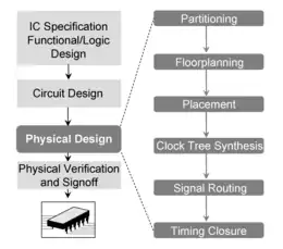 The main steps of physical design are listed below. In practice there is not a straightforward progression - considerable iteration is required to ensure all objectives are met simultaneously. This is a difficult problem in its own right, called design closure.