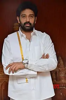 He then went on to direct Homam and Sidham.[16] He had a role in director Vishnuvardhan's Tamil film Sarvam, starring Arya and Trisha.[5] In 2016, he has appeared in the Super Hit Malayalam "Bhaskar The Rascal" pairing with Nayan Tara also starring Mamooty. Then he played a young army officer in another Malayalam film Shikhamani, and made his Kannada film debut with Raavani alongside Pooja Gandhi.[20][21] He is also directing 3 Kannada films for entertainment factory productions.