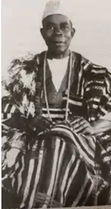![]() Odulate in his chieftaincy regalia and wearing a saki (specially for chief) over his shoulder | |