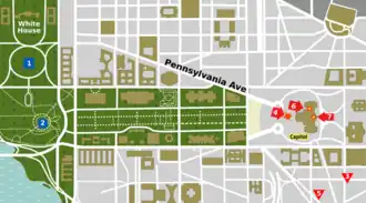 On January 4, D.C. mayor Bowser announced that the Metropolitan Police Department of the District of Columbia (MPD) would lead law enforcement in the district, and would coordinate with the Capitol Police, the U.S. Park Police, and the Secret Service.[152] Jurisdictionally, the Metropolitan Police Department is responsible for city streets of the National Mall and Capitol area, whereas the Park Police are responsible for the Ellipse (the site of Trump's speech and rally that day), the Secret Service is responsible for the vicinity of the White House, and the Capitol Police is responsible for the Capitol complex itself.[152] During a meeting with a representative of the Capitol Police, the Mayor asked "Where does your perimeter start?"; At the point the individual left room, and stopped participation in the conference. The mayor later recalled "that should have been like a trigger to me. Like these people, they don't want to answer questions about their preparation."[153]