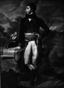 Toussaint Louverture led a successful slave revolt that established control over Hispaniola with himself as governor general for life. Though Louverture pledged loyalty to France, Napoleon Bonaparte sent Charles Leclerc with 20,000 soldiers to reconquer the island.[33] The expedition sailed from Brest on 14 December 1801 and landed in Haiti in February.[34] Hardy was assigned to the expedition. Before he left France he noted in a letter to his wife that Napoleon persuaded his sister Pauline Bonaparte to accompany her husband Leclerc on the expedition. Hardy did not want Calixte to join him because of the dangers of the ocean passage, the war, the climate and yellow fever.[35] The naval squadron reached Cap-Français (Cap-Haïtien) on 4 February 1802. Leclerc organized his army with Charles Dugua as his chief of staff, Jean-François Joseph Debelle as commander of artillery and engineers, and infantry divisions under Hardy, Jean Boudet, Donatien-Marie-Joseph de Rochambeau and Edme Étienne Borne Desfourneaux.[36]