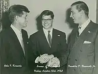Congressman John F. Kennedy and Congressman Franklin D. Roosevelt Jr. of New York pose with Rappaport during a Democratic Party fundraiser at the home of Boston newspaper publisher Harry Harwich in 1952.