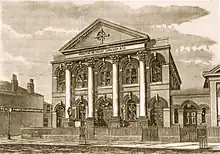 Louth Free Methodist Chapel in 1855. It was situated opposite Sharpley’s house.