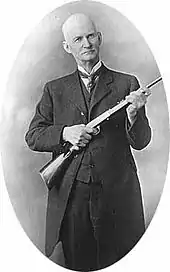 John Moses Browning (January 23, 1855[1] – November 26, 1926) was an American firearm designer who developed many varieties of military and civilian firearms, cartridges, and gun mechanisms – many of which are still in use around the world.[2] He made his first firearm at age 13 in his father's gun shop and was awarded the first of his 128 firearm patents on October 7, 1879, at the age of 24.[3] He is regarded as one of the most successful firearms designers of the 19th and 20th centuries and a pioneer of modern repeating, semi-automatic, and automatic firearms.[4]