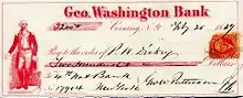 - ↑ Newspaper advertisement for the Geo. Washington Bank published in the Corning Journal on August 16, 1854.