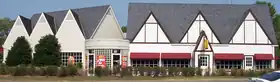 In 1930, Sanders took over a Shell filling station on US Route 25 just outside North Corbin, Kentucky, a small town on the edge of the Appalachian Mountains.[9] It was here that he first served to travelers the recipes that he had learned as a child: fried chicken and other dishes such as steaks and country ham.[9] After four years of serving from his own dining room table, Sanders purchased the larger filling station on the other side of the road and expanded to six tables.[10] By 1936, this had proven successful enough for Sanders to be given the honorary title of Kentucky Colonel by Governor Ruby Laffoon.[11] In 1937 he expanded his restaurant to 142 seats and added a motel he purchased across the street, naming it Sanders Court & Café.[12]