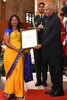 ![]() Radha Devi Kagganapalli receiving the Nari Shakti Puraskar in March 2019 Nari Shakti Puraskar | |
