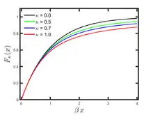 The Kaniadakis exponential distribution (or κ-exponential distribution) is a probability distribution arising from the maximization of the Kaniadakis entropy under appropriate constraints. It is one example of a Kaniadakis distribution. The κ-exponential is a generalization of the exponential distribution in the same way that Kaniadakis entropy is a generalization of standard Boltzmann–Gibbs entropy or Shannon entropy.[1] The κ-exponential distribution of Type I is a particular case of the κ-Gamma distribution, whilst the κ-exponential distribution of Type II is a particular case of the κ-Weibull distribution.