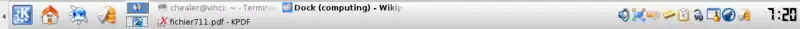 Kicker can embed various applets into itself. The included applets as of KDE 3.5 are: