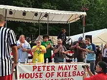 In the United States, kielbasa which may also be referred to as Polish sausage in some areas, is widely available in grocery stores and speciality import markets. While the smoked variety is more commonly found, the uncured variety is often available, particularly in areas with large Polish populations. Several sandwiches featuring the sausage as a main ingredient have become iconic in local cuisines including Chicago's Maxwell Street Polish,[13] Cleveland's Polish Boy,[14] and several offerings from Primanti Brothers in Pittsburgh.[15]
