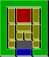 • In the middle two columns, a 2×2 block at the top, with a horizontal 2×1 block beneath it, two 1×1 blocks beneath that, leaving a 2×1 empty space at the bottom.