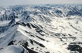 The Koryak Mountains or Koryak Highlands (Russian: Корякское нагорье) are an area of mountain ranges in Far-Eastern Siberia, Russia, located in Chukotka Autonomous Okrug and in Kamchatka Krai, with a small part in Magadan Oblast. The highest point in the system is the 2,562-metre high (8,406 ft) Mount Ledyanaya, located in the Ukelayat Range,[2] in the central part of the mountains.[3]