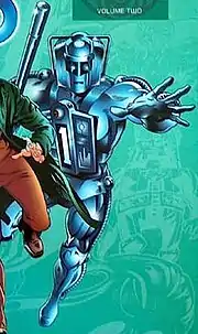 Kroton is a Cyberman, a member of the cybernetically augmented race that is one of the most persistent enemies of the Doctor. However, unlike other Cybermen, Kroton still retains human feelings despite undergoing cyber-conversion. Kroton first appeared in the comic strip Throwback The Soul of a Cyberman, published in Doctor Who Weekly #5-#7 (as it then was), written by Steve Moore and drawn by Steve Dillon.[1]