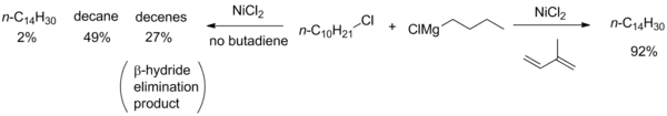 - ↑ Terao, Jun; Watanabe, Hideyuki; Ikumi, Aki; Kuniyasu, Hitoshi; Kambe, Nobuaki (1 April 2002). "Nickel-Catalyzed Cross-Coupling Reaction of Grignard Reagents with Alkyl Halides and Tosylates: Remarkable Effect of 1,3-Butadienes". Journal of the American Chemical Society. 124 (16): 4222–4223. CiteSeerX 10.1.1.604.5758. doi:10.1021/ja025828v. PMID 11960446.