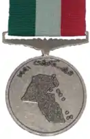 The Kuwait Liberation Medal (Arabic: وسام التحرير Wisām al-Taḥrīr, English: Liberation Medal, lit. 'Medal of Liberation') is a medal created in 1994 that was issued by the government of Kuwait to both local and foreign military personnel who served in the Persian Gulf War's "Liberation of Kuwait" campaign phase of 1990 and 31 August 1993.[1]