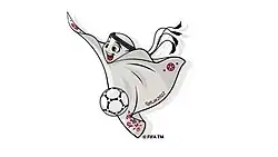 Laʼeeb (Arabic: لعيب, romanized: Laʿīb) was the official mascot of the 2022 FIFA World Cup,[1] which was held in Qatar.[2] The name means "super-skilled player" in Arabic,[3] and is a representation of the popular men's headdress keffiyeh, used in many parts of the Arab world.[4] He[5] was designed by Indian firm Fractal Picture, and animated by Qatari firm Katara Studios.[6][7]