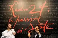 La Zanzara is an Italian radio program created by the Italian journalist, Giuseppe Cruciani, and broadcast on Radio 24.[1] Journalist David Parenzo is the co-host. The show is known for giving space to controversial topics and for being politically incorrect. It is also famous for prank calls to Italian celebrities and politicians.
