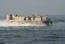 The Landing Craft Air Cushion (LCAC) is a class of air-cushioned landing craft (hovercraft) used by the United States Navy and the Japan Maritime Self-Defense Force (JMSDF). They transport weapons systems, equipment, cargo and personnel from ship to shore and across the beach. It is to be replaced in US service by the Ship-to-Shore Connector (SSC).