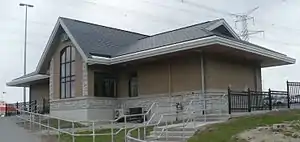 In May 2005, construction of a new and more modern station building was completed, replacing the previous station building at Langstaff Road and using the north end of the same train platform. The south building was converted to a waiting room after the new station building opened for service on June 6, 2005. The new building has a ticket office for passengers to purchase bus and train tickets on weekday mornings.