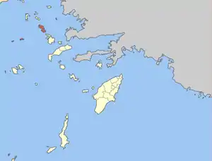 Leros (Greek: Λέρος), also called Lero (from the Italian language), is a Greek island and municipality in the Dodecanese in the southern Aegean Sea. It lies 317 kilometres (197 miles; 171 nautical miles) from Athens's port of Piraeus, from which it can be reached by a nine-hour ferry ride or by a 45-minute flight from Athens, and about 20 miles to Turkey. Leros is part of the Kalymnos regional unit. It has a population of 7,988.[2]