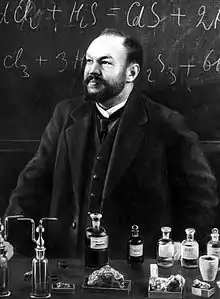 Lev Aleksandrovich Chugaev (16 October 1873 – 26 September 1922) was a chemist from the Russian Empire. At the height of his career, he was professor of chemistry at the University of Petersburg, being the successor to Dmitri Mendeleev. He was active in the fields of inorganic chemistry, especially platinum group complexes, as well as organic chemistry.[1][2][3] He is also known as Leo Aleksandrovich Tschugaeff or Tschugaev.