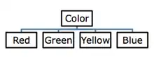 Color (hypernym) → red, green, yellow, blue (hyponyms) |