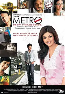 Life in a... Metro is a 2007 Indian Hindi-language drama film co-produced, co-written and directed by Anurag Basu. Partly inspired from Billy Wilder's romantic comedy film The Apartment (1960), it features an ensemble cast of Dharmendra, Nafisa Ali, Shilpa Shetty, Kay Kay Menon, Shiney Ahuja, Irrfan Khan, Konkona Sen Sharma, Kangana Ranaut and Sharman Joshi in lead roles. The music is composed by Pritam with lyrics by Sayeed Quadri. It narrates the lives of nine people living in Mumbai and deals with topics such as extramarital affairs, sanctity of marriage, commitment phobia and love.[2]