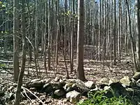 Notable features include the Hanover Road parking lot and boat launch, semi-obscured (by trees) scenic views of Pond Brook inlet and Lake Lillinonah (Housatonic River), a climb to a high point of 480-foot (150 m), a very large oak tree, several stone fences and foundations and a demonstration of a maple sugaring technique known as "sugarbush" near the Echo Valley Road parking lot.[2] The Lillinonah Trail is maintained largely through the efforts of the Connecticut Forest and Park Association and the Newtown Forest Association.