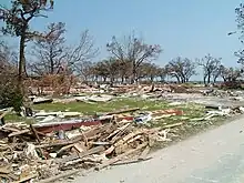 Hurricane Katrina struck the city on August 29, 2005, destroying almost all buildings within 500 m (1,600 ft) of the Gulf of Mexico shoreline. Many Long Beach residents were left homeless or living in water- and or wind-damaged houses. At least one person was confirmed dead.[10]