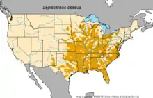 US distribution of longnose gar