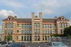 Louisa May Alcott School, also known as "School No. 59" and "Reisterstown Road School," is a historic elementary school located at Baltimore, Maryland, United States. It is a Colonial Revival or Georgian Revival structure completed in 1910. The freestanding building rises 3 ½ to 4 levels from brick base to metal cornice. It features symmetrically designed brick and stucco bands, decorative terra cotta, and three metal cupolas atop the hipped roof.[2]