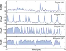 - ↑ Albeck, John A G., et al. “Frequency-Modulated Pulses of ERK Activity Transmit Quantitative Proliferation Signals.” Molecular Cell, vol. 49, no. 2, 2013, pp. 249–261., doi:10.1016/j.molcel.2012.11.002.