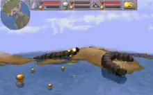 There was also a port for the Sega Saturn console.[4] It is largely identical to the PlayStation version, and likewise includes the Hidden Worlds expansion.[5] Gaming journalist Ed Lomas reported the technical differences from the PlayStation version as: the sky is animated in a "sliding wallpaper" fashion (whereas it moves in 3D in the PlayStation version), the sprites are more detailed, and the shadows lack the translucency effect.[6]