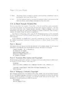 Texinfo enables structuring a document like a book with chapters, sections, cross references and indices. The source is almost plain text, but technically it is formatted text marked up by commands that begin with "@". A sample of a part of a source file:
