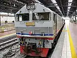 The MR began to modernize the equipment with the ordering of diesel locomotives and railcars to replace steam-hauled services, and the first diesel locomotive entered service in 1957. The railcars entered service in 1960, initially on short-haul services.[2] Rapid services were introduced later, cutting travel times from Singapore to Kuala Lumpur down to six hours, which was competitive at the time.[3] MR and later KTM continued ordering more diesel locomotives through the decades, rendering the old steam locomotives redundant. The last steam locomotive was withdrawn from service in 1974.