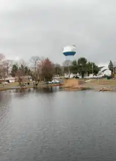 Helmetta Pond section of Manalapan Brook, with the Helmetta water tower in the background