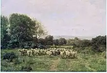 His subjects were mainly seaside and country landscapes, often on a large scale and painted entirely outdoors. North Wales, Surrey, Brittany and Normandy were his favourite haunts.[19]
