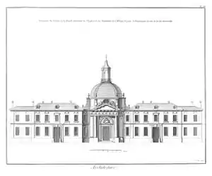 In the care of Sally Hemings, at age nine Polly sailed to Europe to join her father and older sister Patsy in Paris. They first landed in England, where Abigail Adams, wife of the U.S. Minister John Adams, looked after the girls before they joined her father in Paris: Abigail developed a deep and lasting affection for Polly.[9] Jefferson received a letter from Adams that said that Polly was "the favorite of every creature in the House."[1] In France, Polly attended the Pentemont Abbey convent school with her older sister Patsy.[10] Maria, who had a love of reading, was sufficiently schooled that she did well at the elite school. She spoke French "easily enough" according to her father and in addition to her French studies, she also learned Spanish, drawing, and how to play the harpsichord.[11] Polly and Patsy became ill with typhus and were at their father's house from the winter of 1788 until the spring of 1789.[4] After Patsy expressed a desire to convert to Catholicism and said she was considering religious orders, Jefferson quickly withdrew her and her younger sister Polly from the school.[12] The French Revolution broke out during their last few months in Paris.[4]