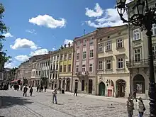 Rynok Square (Ukrainian: Площа Ринок, romanized: Ploshcha Rynok, Polish: Rynek we Lwowie, German: Ring) is a central square of the city of Lviv, Ukraine. According to archaeological data, the square was planned in the second half of the 13th century, during the reign of Prince Leo I of Galicia.[1][2] However, there is a long tradition of later dating the emergence of the square, associated with the activities of the Polish king Casimir III the Great.[3]