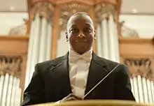 Marlon Daniel is an American composer, conductor, and music director. He is known for being a specialist in the music of Chevalier de Saint-Georges.[1] Daniel was the winner of the 2009 John and Mary Virginia Foncannon Conducting Award, and a prizewinner at the 2018 Bucharest Symphony Orchestra International Conducting Competition.[2]