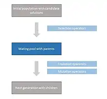 A mating pool is a concept used in evolutionary computation, which refers to a family of algorithms used to solve optimization and search problems.[1]