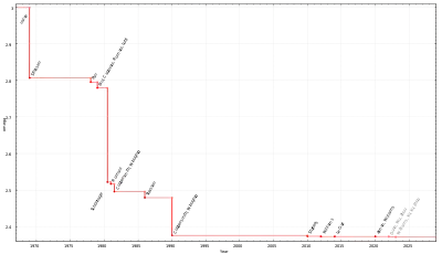 Improvement of estimates of exponent ω over time for the computational complexity of matrix multiplication .