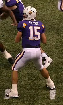 The departure of Randall left Russell and Flynn battling for the starting quarterback position in the 2005 season. Russell eventually got the job, leaving Flynn as backup.[10] He played in seven games at quarterback for the Tigers in 2005, completing 27 of 48 passes for 457 yards, 7 touchdowns and 1 interception. In a win over North Texas, Flynn threw a perfect 7-of-7 for 139 yards and 3 touchdowns, all in the fourth quarter. In the 2005 SEC Championship Game against the Georgia Bulldogs, starting quarterback Russell was injured and Flynn finished the game. He was then given the nod to start for the Tigers in the 2005 Chick-fil-A Peach Bowl against the University of Miami Hurricanes. In that game, he led the Tigers to a 40–3 rout of Miami.