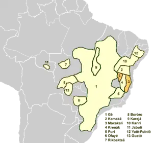 - Patasho – originally spoken between the Jequitinhonha River and São Francisco River in the state of Minas Gerais; the last survivors became extinct on the right shore of the Jequitinhonha River, Espirito Santo.