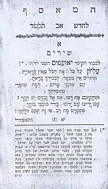 The Me'assefim (Hebrew: המאספים) were a group of Hebrew writers who between 1784 and 1811 published their works in the periodical Ha-Me'assef (Hebrew: הַמְאַסֵּף), which they had founded.